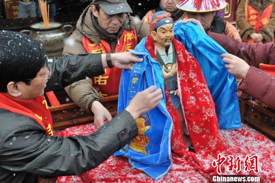 2月3日是中國農(nóng)歷臘月二十三,民間謂之“小年”。當(dāng)日,天津天后宮舉行春祭大典,數(shù)百民眾雪中恭迎值年太歲徐單大將軍。中新社發(fā) 郭曉帆 攝 |