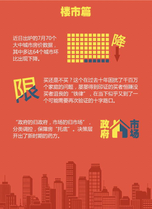 “北漂”的小王最近在微信上很活躍,也很困惑,“我馬上納稅滿五年了,有資格了,你覺(jué)得我現(xiàn)在該出手買房嗎?” 小王困惑的背景,正是近日出爐的7月70個(gè)大中城市房?jī)r(jià)數(shù)據(jù),其中多達(dá)64個(gè)城市環(huán)比出現(xiàn)下降。而與之對(duì)應(yīng)的是,據(jù)媒體報(bào)道,目前已有超過(guò)3/4的限購(gòu)城市在一定程度上松綁了限購(gòu)政策,部分城市放寬了落戶政策,甚至對(duì)購(gòu)房進(jìn)行稅費(fèi)補(bǔ)貼。 一邊是價(jià)格出現(xiàn)松動(dòng),一邊是一些地方躍躍欲試醞釀“救市”。 買還是不買?這個(gè)在過(guò)去十年困擾了千百萬(wàn)個(gè)家庭的問(wèn)題,屢屢得到印證的買者恒賺沒(méi)買者沮喪的“鐵律”,在當(dāng)下似乎又到了一個(gè)可能需要再次驗(yàn)證的十字路口。 有房的人尤其是有多套房的人期望價(jià)格能夠永遠(yuǎn)漲下去,至少不能跌破購(gòu)買價(jià);沒(méi)房的人祈禱房?jī)r(jià)趕緊跳水,回歸到當(dāng)初錯(cuò)過(guò)的那個(gè)時(shí)機(jī)。 “預(yù)期”的迷茫,讓市場(chǎng)各方都在急切的關(guān)注和搜尋“政策的信號(hào)”。 然而,新一屆政府上任一年多以來(lái),卻甚少就樓市調(diào)控進(jìn)行明確表態(tài)。相對(duì)應(yīng)的是關(guān)于保障房建設(shè)、棚戶區(qū)改造的投入持續(xù)加碼,毫不放松。 當(dāng)樓市的“樓”仍然還在伴隨著供需平衡的波動(dòng)不斷的建造,樓市的“市”卻已在悄然發(fā)生改變。 從1998年起推行住房商品化改革至今不過(guò)十余年,中國(guó)房地產(chǎn)市場(chǎng)所存在的區(qū)域差異性、供求平衡的波動(dòng)性、自住與投資需求的復(fù)雜性決定了樓市的發(fā)展很難用一個(gè)簡(jiǎn)單的框架進(jìn)行約束整治。 如何才能告別暴漲暴跌,避免硬著陸,切實(shí)防范房地產(chǎn)金融風(fēng)險(xiǎn),消除過(guò)于依賴土地財(cái)政的不良隱患? “政府的歸政府,市場(chǎng)的歸市場(chǎng)”,分類調(diào)控,保障房“托底”。決策層開(kāi)出了新時(shí)期的藥方。(來(lái)源: 新華網(wǎng))
