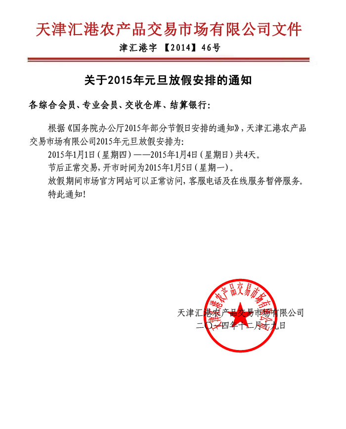 關(guān)于2015年元旦放假安排的通知