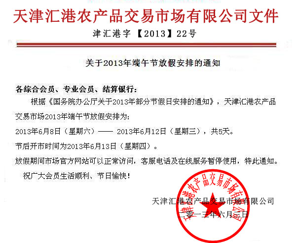 關(guān)于天津匯港農(nóng)產(chǎn)品交易市場交易時間延長的公告