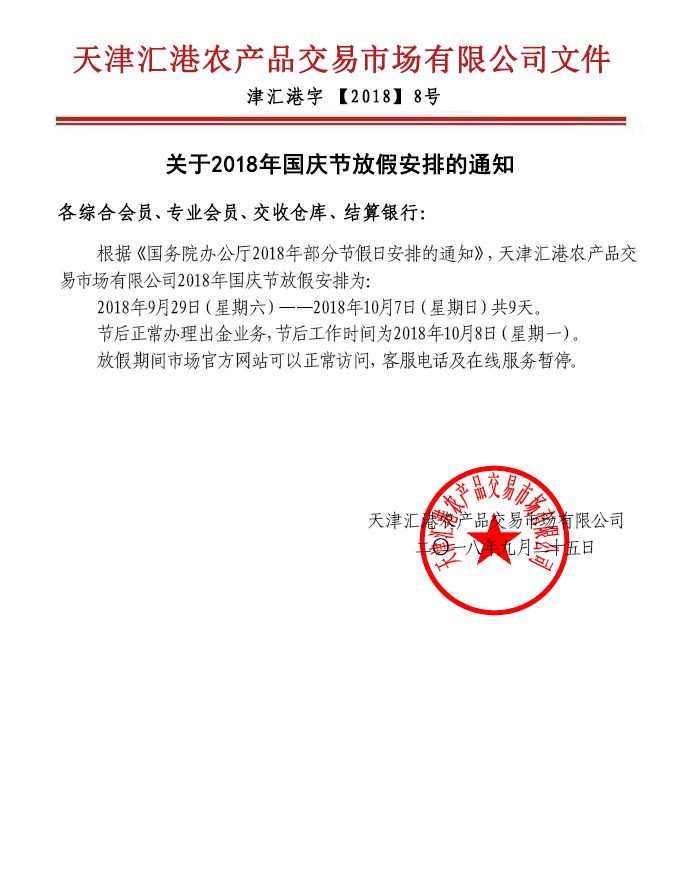 關于2018年國慶節(jié)放假安排的通知