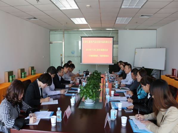 2013年11月4日-5日在天津匯港農產品交易市場有限公司會議室召開關于2013年11月市場部大區(qū)會議。匯港總裁張健先生,副總裁及市場部各位總監(jiān)參加本次會議。在張健總裁的主持下與會人員各抒己見,充分交流經驗、總結經驗、修正漏洞,認真且合理的規(guī)劃未來兩月的業(yè)績目標,力爭年底業(yè)績突破新高。