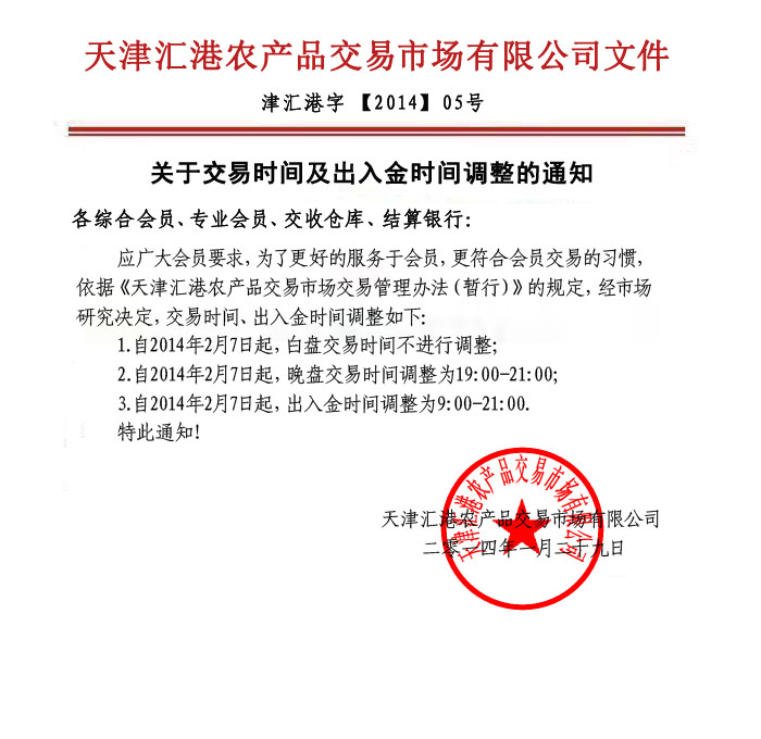 關(guān)于交易時間及出入金時間調(diào)整的通知