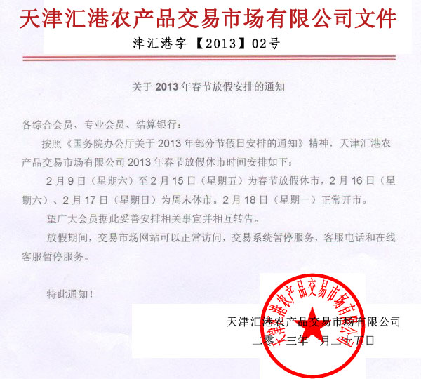 關(guān)于2013年春節(jié)放假安排的通知