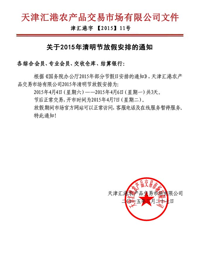 關于2015年清明節(jié)放假安排的通知