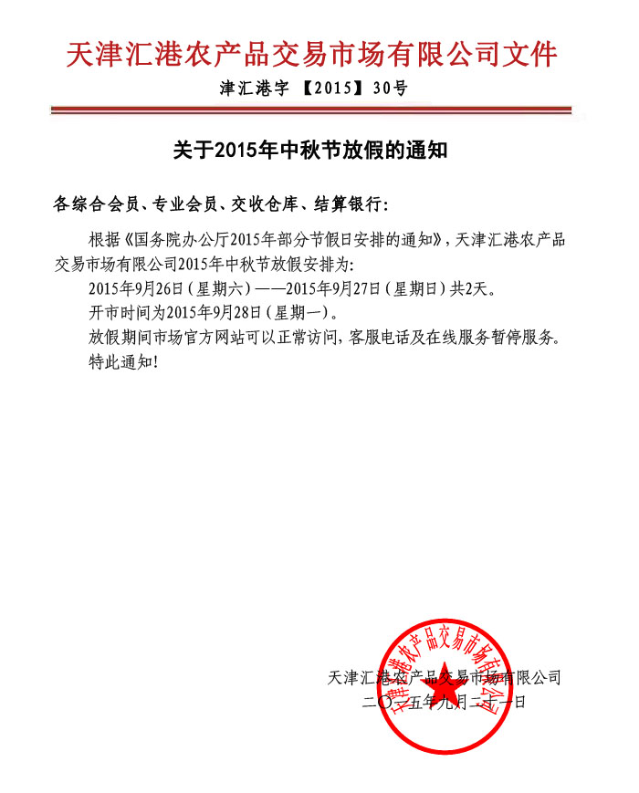關(guān)于2015年中秋節(jié)放假的通知