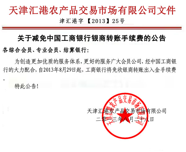 關(guān)于減免中國(guó)工商銀行銀商轉(zhuǎn)賬手續(xù)費(fèi)的公告
